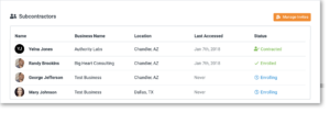 They’ll be able to track which subcontractors have logged in and accepted their invite, and even monitor their enrollment statuses. This new level of visibility will enable them to help prevent subcontractors stalling out during enrollments and get to work quicker.